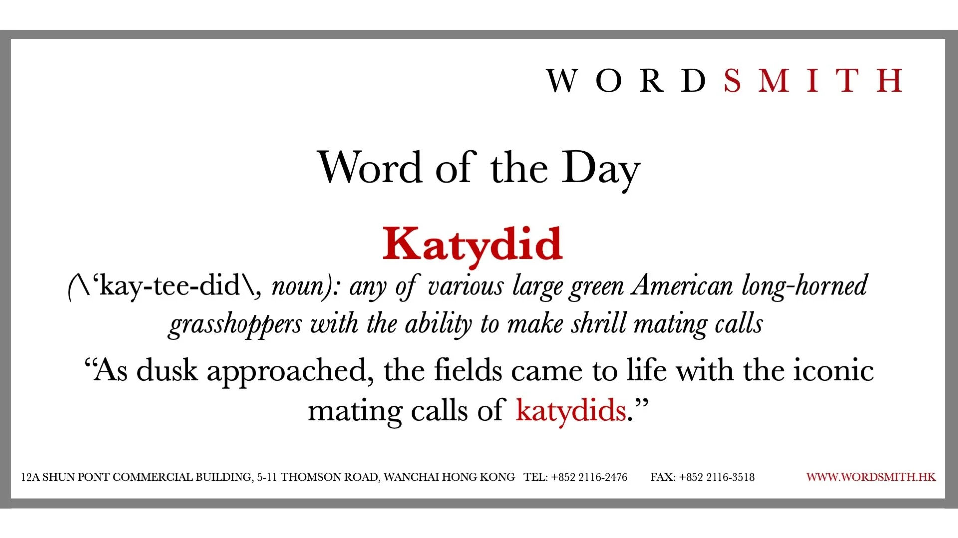 Wordsmith's Word of the Day: Katydid