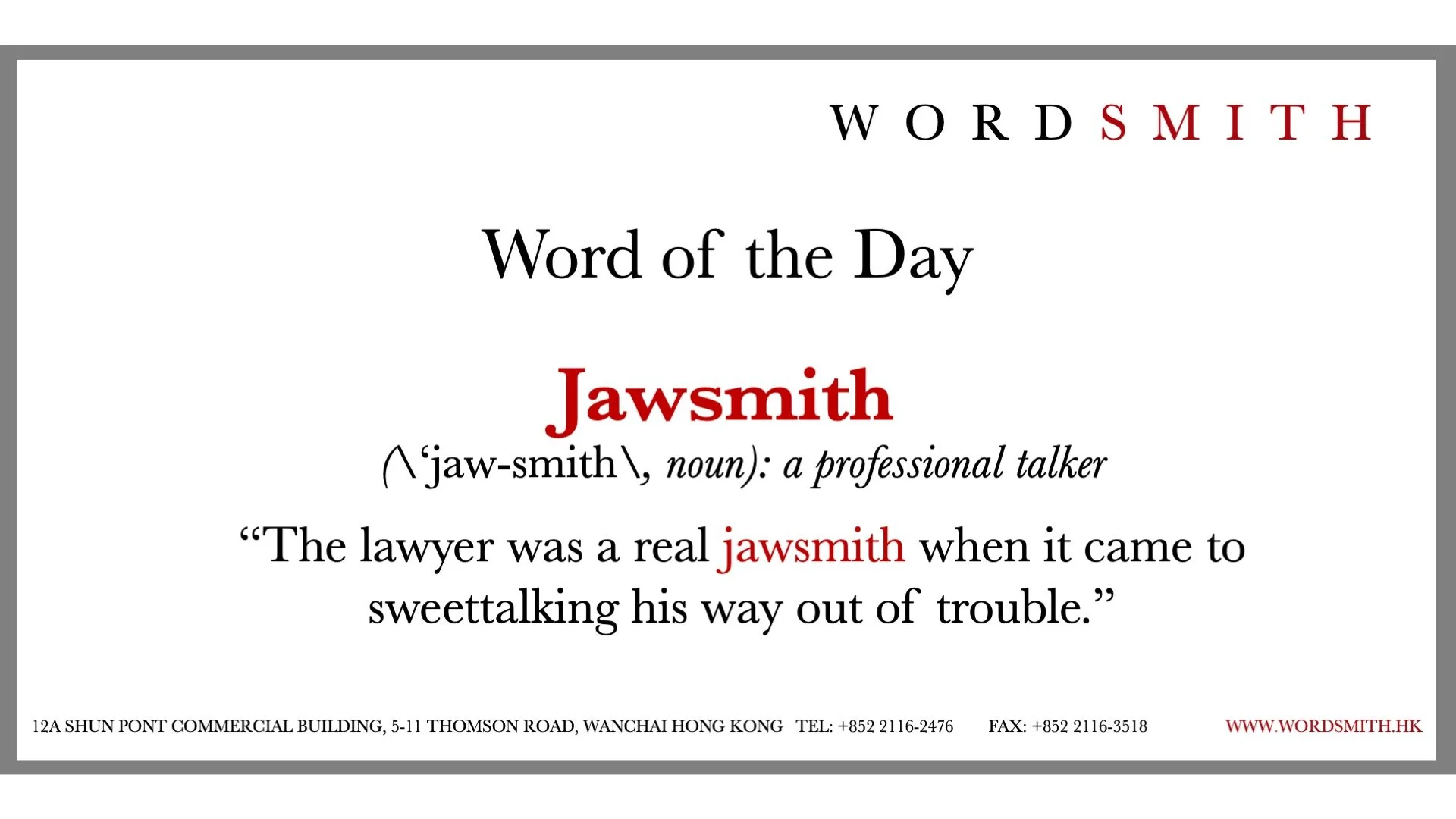 Wordsmith - copywriting & speechwriting | Suite 1005, SBI Centre, 54-58 Des Voeux Road, Central, Hong Kong