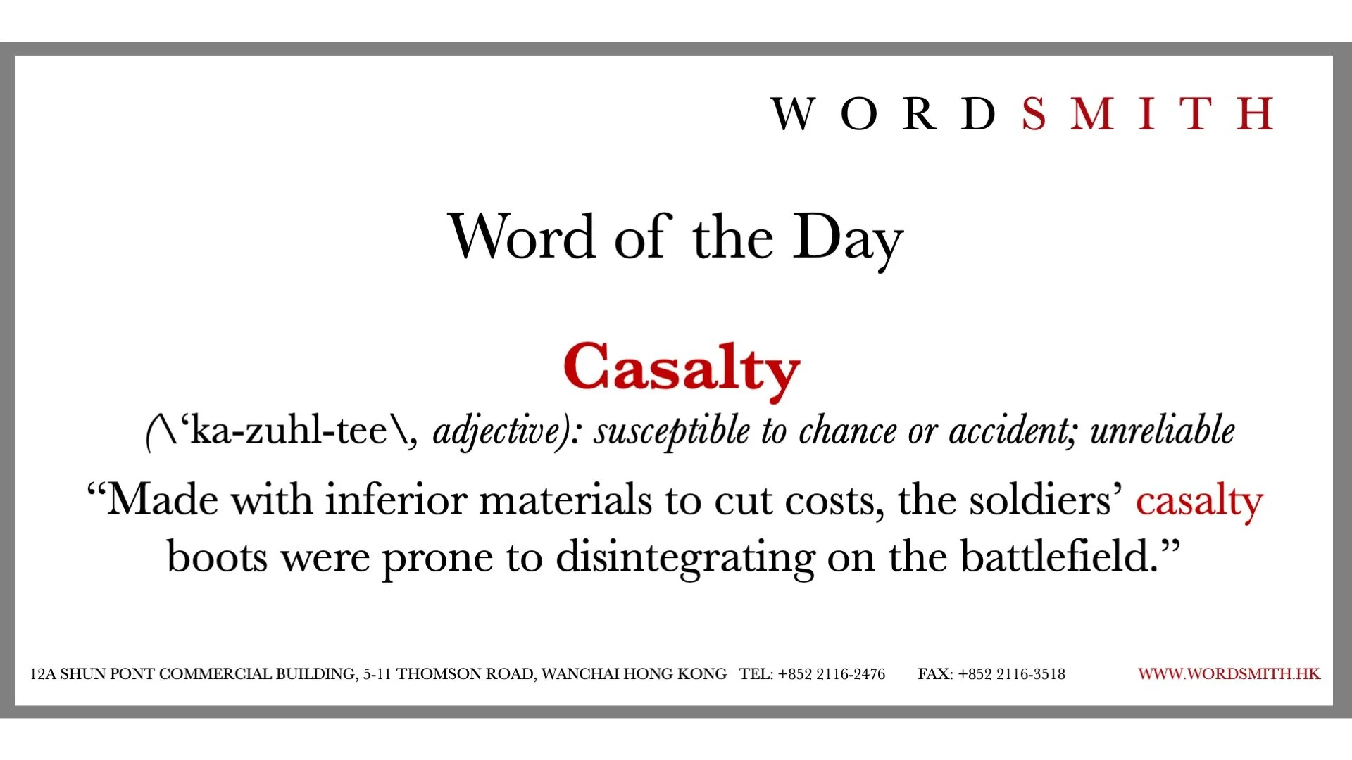 Wordsmith's Word of the Day: Casalty