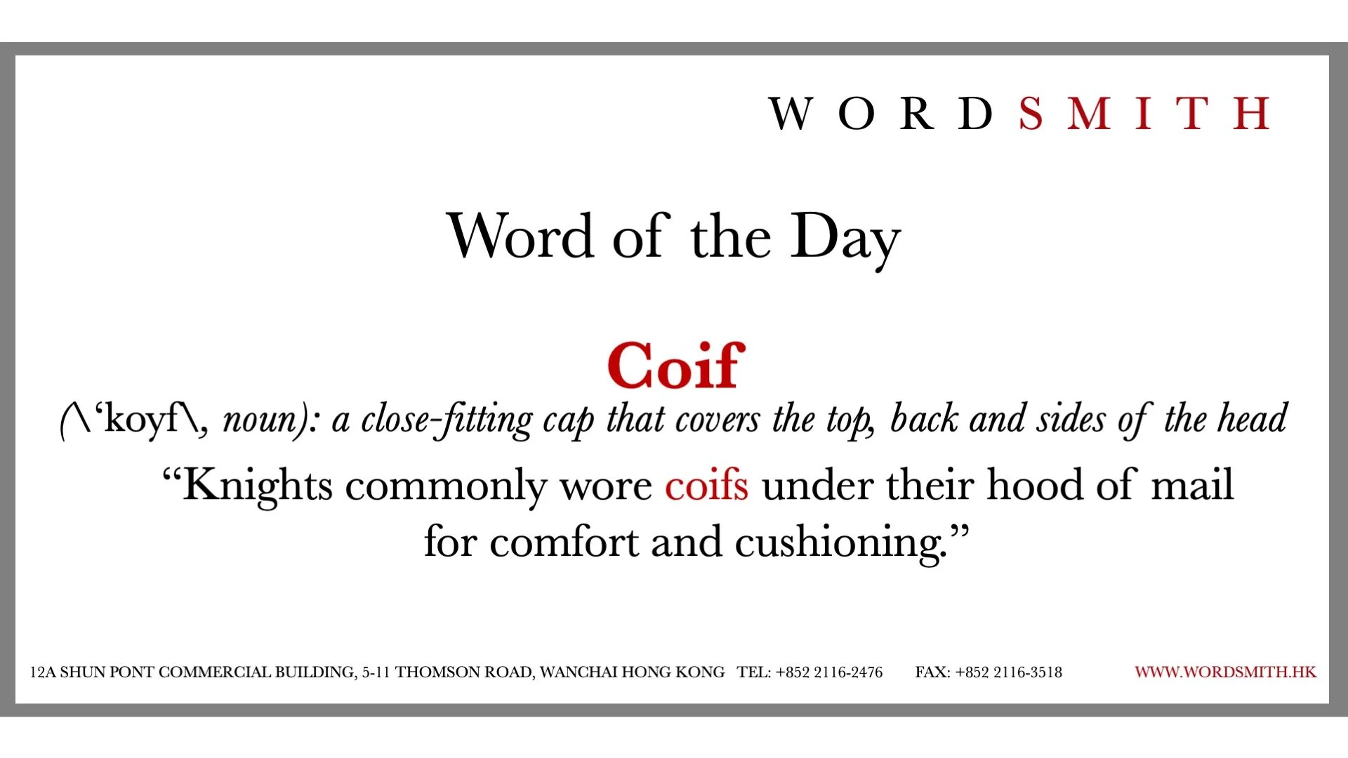Wordsmith's Word of the Day: Coif